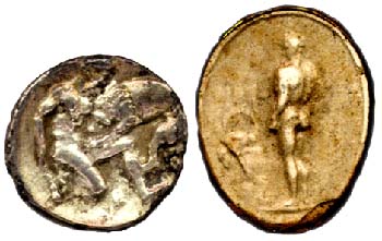 showdown, though common in other forms, are once more rare on Greek coinage (e.g.